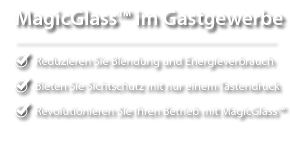 Erhöhen Sie die Sicherheit und verringern Sie den Wartungsaufwand… Bieten Sie Ihrem Unternehmen ein innovatives, sauberes und ästhetisches Gefühl… MagicFilm™ hilft Unternehmen, sich von der Masse abzuheben und ermöglicht Ihren Mitarbeitern, mehr zu tun.