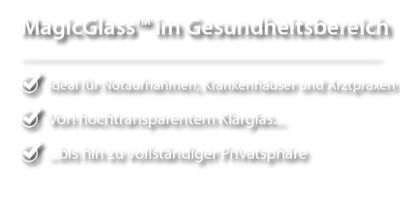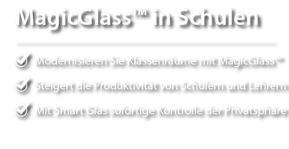MagicGlass™ ist unbestreitbar die Zukunft von Sichtschutzglas und Fensterbeschichtungen. Ob für kommerzielle, private oder spezielle Anwendungen, der größte Vorteil, den MagicGlass™ bietet, ist die vollständige Privatsphäre auf Knopfdruck.